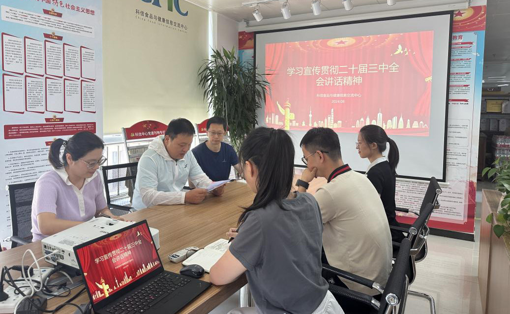 根據民政部部管社會組織綜合黨委《關于認真學習宣傳貫徹黨的二十屆三中全會精神的通知》(民綜黨委〔2024〕9 號)要求,2024 年 8 月 14 日,科信中心黨支部開展“學習貫徹黨的二十屆三中全會精神”黨課活動。會議由科信中心黨支部包大躍書記主持,支部全體黨員參加。